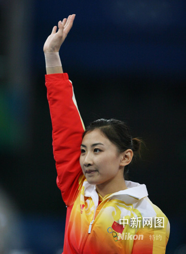 8月18日,中國選手何雯娜在北京奧運會女子蹦床比賽中奪得冠軍。中新社記者 武仲林 攝