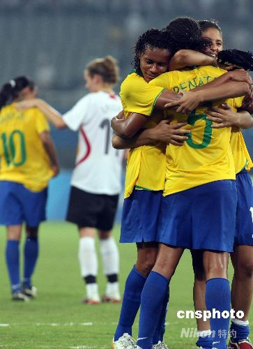 8月18日,北京奧運會女足半決賽,德國對陣巴西的比賽在上海體育場進行。最終,巴西隊以4:1戰(zhàn)勝德國隊晉級決賽。 中新社發(fā) 湯彥俊 攝