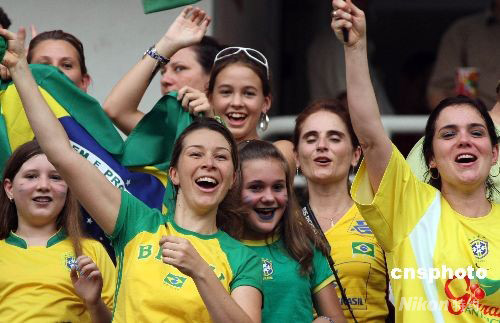 圖為巴西球迷舞桑巴慶祝球隊晉級決賽。
