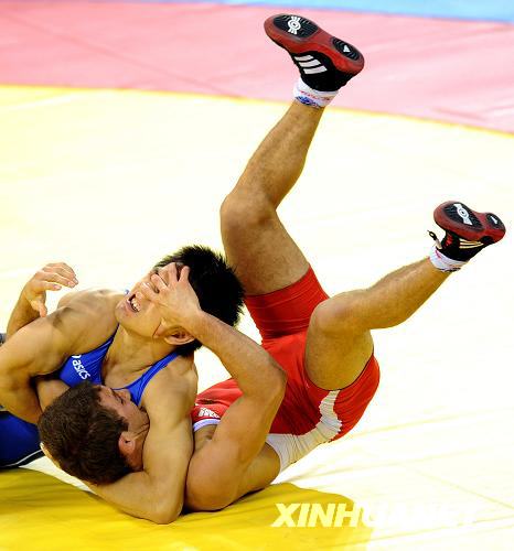 8月19日,在北京奧運(yùn)會摔跤男子自由式55公斤級半決賽中,日本選手松永共廣(藍(lán))戰(zhàn)勝俄羅斯選手別西克·庫杜霍夫,晉級決賽。新華社記者李鋼攝
