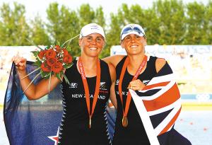 16日,新西蘭雙胞胎姐妹卡羅琳·斯溫德爾和喬治娜·斯溫德爾以0.01秒的微弱優(yōu)勢(shì),驚險(xiǎn)衛(wèi)冕賽艇女子雙人雙槳冠軍。姐妹倆同時(shí)也是該項(xiàng)目世界紀(jì)錄保持者。