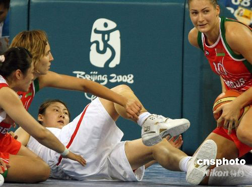 圖為白俄羅斯隊(duì)三人夾擊防守中國(guó)隊(duì)卞蘭的進(jìn)攻。