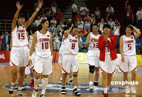 8月19日下午,北京奧運(yùn)會(huì)女子籃球四分之一淘汰賽在北京五棵松籃球館舉行,中國(guó)女籃以77比62擊敗白俄羅斯率先進(jìn)入前四強(qiáng)。這是16年之后中國(guó)女籃再次闖進(jìn)奧運(yùn)四強(qiáng)。中新社發(fā) 任晨鳴 攝