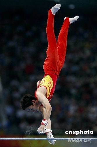 圖:鄒凱奪得奧運(yùn)會(huì)體操男子單杠金牌 (2)