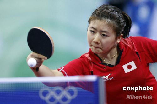 8月21日,北京奧運(yùn)會(huì)乒乓球女子單打第四輪的比賽在北京大學(xué)體育館進(jìn)行,日本選手福原愛不敵中國(guó)選手張怡寧遭淘汰。 中新社發(fā) 盛佳鵬 攝