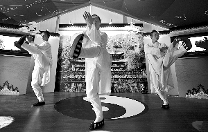 7月26日,“中國故事”湖北小屋內(nèi),正在進行武當(dāng)功夫表演。陳杰 攝