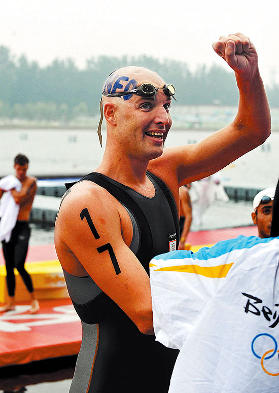 今天,27歲的荷蘭人范德韋登奪得了男子10公里馬拉松游泳的冠軍。鮮為人知的是,他在7年前還是一個絕癥患者。時至今日,他頭頂上還有兩個一元硬幣大小的傷疤——那是白血病患者做化療和骨髓移植的痕跡。