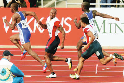 事件回放:美國(guó)隊(duì)憋足勁要在4×100米項(xiàng)目上好好作為。21日晚進(jìn)行的預(yù)賽中,美國(guó)隊(duì)分在A組,四棒選手分別是羅德尼馬丁、帕德格特、帕頓和蓋伊。美國(guó)隊(duì)頭三棒發(fā)揮正常,但在帕頓準(zhǔn)備交棒給第四棒蓋伊?xí)r意外失手,棒子很不客氣地掉在了地上。繼百米預(yù)賽意外“出局”之后,蓋伊又犯了一次“低級(jí)錯(cuò)誤”,也使得美國(guó)隊(duì)決賽欲與牙買(mǎi)加隊(duì)一爭(zhēng)高低的希望就此泡湯。更令美國(guó)人郁悶的是,一小時(shí)之后,美國(guó)女隊(duì)“復(fù)制”了男隊(duì)的錯(cuò)誤,同樣因交接棒失誤與決賽無(wú)緣。