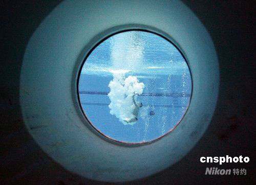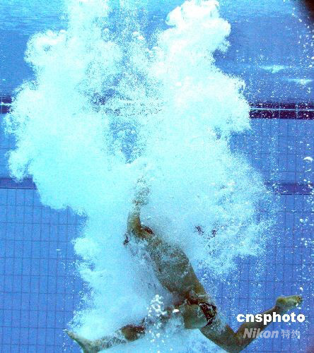 8月23日,北京奧運會男子10米跳臺跳水半決賽在國家游泳中心“水立方”舉行。圖為精彩瞬間。中新社發(fā) 武仲林 攝