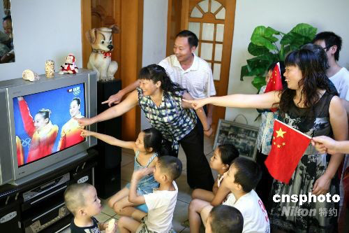 8月23日,四川閬中古城書院街一幢居民樓內(nèi),中國花樣游泳隊(duì)選手王娜的親朋圍在電視機(jī)旁觀看北京奧運(yùn)會花樣游泳集體自由自選決賽。當(dāng)日,中國花樣游泳隊(duì)奪得團(tuán)體自由自選銅牌,這是她們在奧運(yùn)會歷史上獲得的首枚獎(jiǎng)牌。