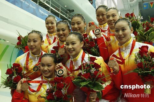 中國花樣游泳隊(duì)奪得女子自由自選銅牌。中新社發(fā) 杜洋 攝