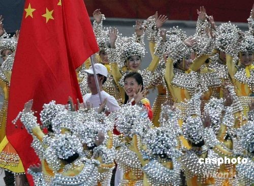 8月24日晚,第二十九屆夏季奧林匹克運動會在北京閉幕。33歲的羽壇老將、上屆及本屆奧運會羽毛球女子單打兩屆冠軍張寧擔任中國代表團旗手。中新社發(fā) 任晨鳴 攝