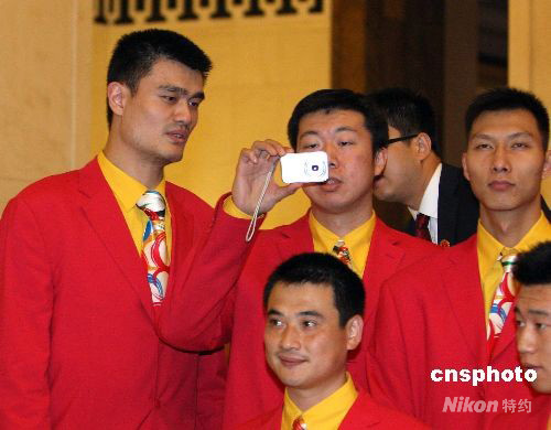 8月26日,2008年北京奧運(yùn)會中國體育代表團(tuán)總結(jié)大會在北京人民大會堂金色大廳舉行。圖為中國男籃隊員參加北京奧運(yùn)會中國體育代表團(tuán)總結(jié)大會。 中新社發(fā) 廖文靜 攝
