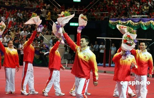 楊威、鄒凱、李小鵬、肖欽、黃旭、陳一冰等選手與香港觀眾近距離接觸。他們的精彩表演,博得全場(chǎng)熱烈的掌聲。中新社發(fā) 洪少葵 攝