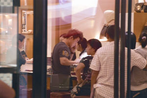 王皓在名店內(nèi)打電話挑手袋款式。(圖片來源:澳門日報)