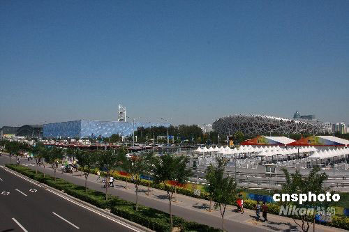 9月2日,北京依然晴空氣朗,游客樂游奧運村。奧運會期間,“鳥巢”、“水立方”等北京奧運場館給全世界留下深刻印象!笆弧秉S金周期間,奧運場館將最大限度地保留奧運賽事時的場景和設(shè)施,向北京市民和各地游客開放,供人們參觀游覽。 中新社發(fā) 追影 攝