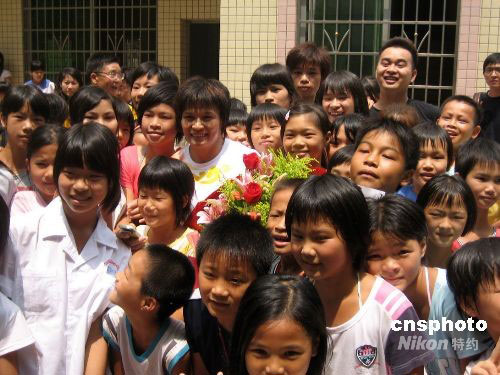 九月五日上午,“媽媽冠軍”冼東妹回到母校廣東四會市業(yè)余體校,鼓勵在校的師弟師妹要練好基本功,努力成才,從小樹立為國爭光為家鄉(xiāng)爭光的理想。一九七五年九月十五日,冼東妹出生在廣東四會逕口鎮(zhèn)新農(nóng)村的一個普通農(nóng)家。一九八八年,東妹進四會市業(yè)余體校先練習摔跤。中新社發(fā) 黃耀輝 攝