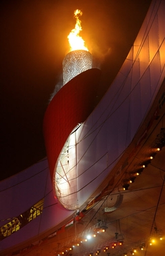 9月6, 北京殘奧會開幕式在北京國家體育場隆重舉行,殘疾人跳高運動員侯斌點燃殘奧會圣火主火炬臺。