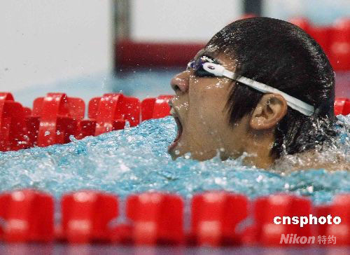 9月7日,在北京殘奧會男子100米自由泳-S3級別決賽中,中國選手杜劍平以1分35秒21的成績摘得金牌并打破世界紀錄,這是中國軍團在本屆殘奧會上的首枚金牌。中新社發(fā) 任晨鳴 攝