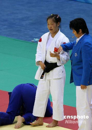 9月7日,在工人體育館舉行的殘奧會(huì)盲人柔道女子48公斤級(jí)比賽中,中國(guó)選手郭華平以絕對(duì)優(yōu)勢(shì)戰(zhàn)勝了巴西選手卡拉·卡多佐,奪得金牌。中新社發(fā) 王韶驊 攝