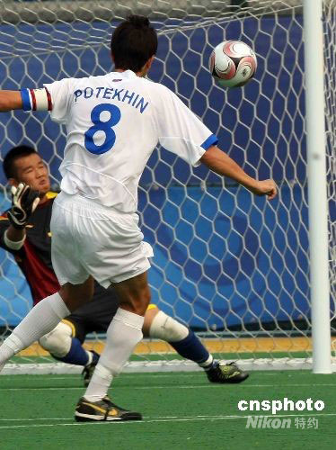 北京殘奧會(huì)七人制(男子)足球比賽9月8日在北京奧林匹克公園內(nèi)的橄欖球場開賽,在首場比賽中,中國隊(duì)因?yàn)榕c對(duì)手俄羅斯隊(duì)實(shí)力過于懸殊最終以0比6失敗。圖為俄羅斯隊(duì)隊(duì)長、8號(hào)伊萬·波捷欣射門得分。殘奧會(huì)七人制(男子)足球比賽在橄欖球賽場舉行,全場共60分鐘,隊(duì)員為腦癱患者。中新社發(fā) 任晨鳴 攝