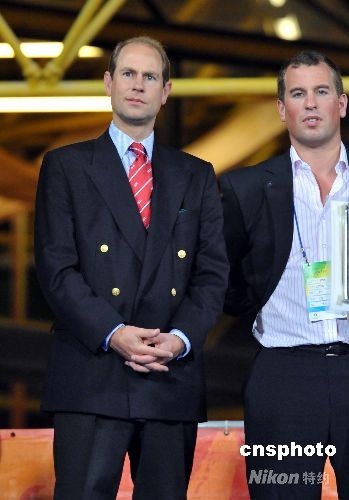 九月九日晚,英國皇室成員愛德華王子(左)到香港沙田觀看殘奧馬術(shù)項目比賽,為英國馬術(shù)隊員打氣,當(dāng)晚,馬術(shù)三項賽事中,英國隊奪得兩金一銀佳績。中新社發(fā) 鄧慶樂 攝