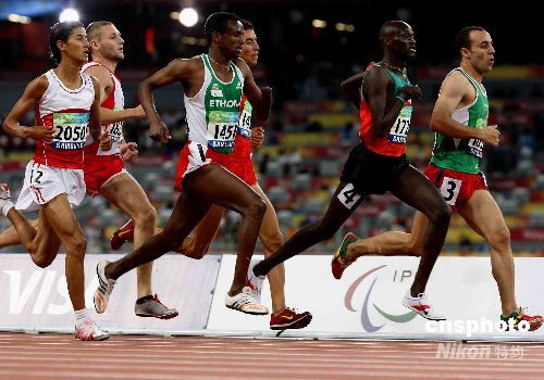 9月10日晚,北京殘奧會(huì)田徑各項(xiàng)比賽繼續(xù)在北京奧林匹克公園內(nèi)的國(guó)家體育場(chǎng)-鳥(niǎo)巢舉行,在長(zhǎng)跑賽事中,非洲肯尼亞、摩洛哥等國(guó)的選手如同奧運(yùn)會(huì)一樣占據(jù)“霸主”地位。 中新社發(fā) 任晨鳴 攝