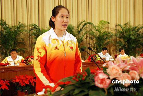 圖:奧運(yùn)會(huì)女子蝶泳冠軍劉子歌在報(bào)告會(huì)上發(fā)言