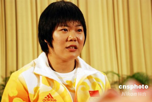 圖:奧運女子舉重冠軍劉春紅在報告會上發(fā)言