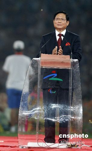 9月17日晚,北京2008年殘奧會(huì)閉幕式在國家體育場舉行。圖為北京奧組委主席劉淇致辭。中新社發(fā) 杜洋 攝