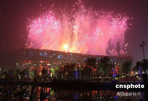 圖:殘奧閉幕式上絢麗焰火映照“鳥巢”(2)
