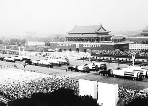 公元1984年10月1日。共和國(guó)第35個(gè)生日,一枚枚白色的戰(zhàn)略導(dǎo)彈在巨型戰(zhàn)車牽引下,緩緩駛過天安門廣場(chǎng)。