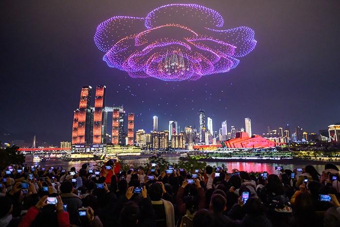 元旦假期 重慶無人機(jī)燈光秀點亮絢麗夜空