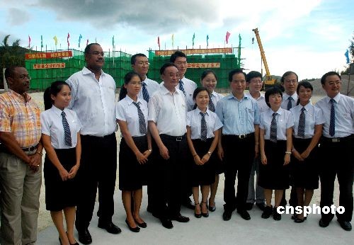 圖:吳邦國在塞舌爾接見中國青年志愿者