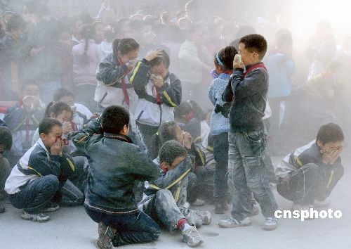 圖:烏魯木齊小學(xué)舉行消防演習(xí)