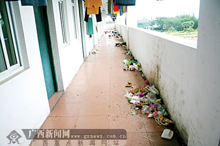 圖:學(xué)生宿舍樓樓道成“垃圾場”