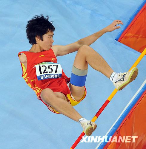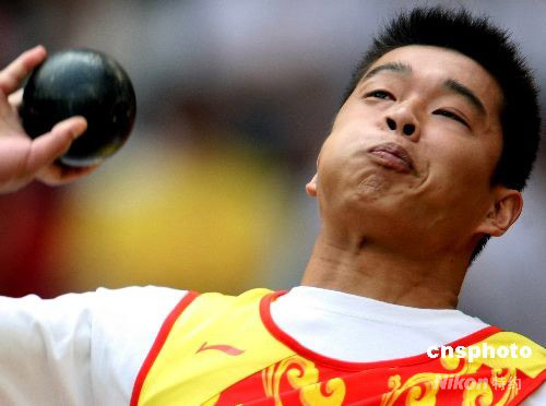圖:中國選手郭偉鉛球賽場奪金牌破紀錄