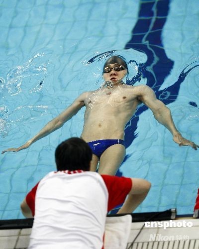 圖:男子50米仰泳S3級教練幫助選手出發(fā)