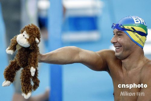 圖:巴西游泳選手?jǐn)y“猴子”亮相決賽場(chǎng)