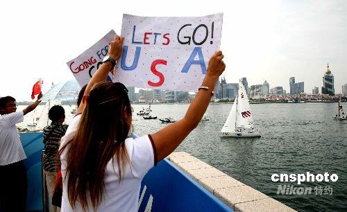 圖:熱情觀(guān)眾為殘奧帆船賽選手加油