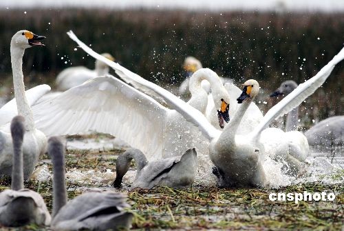 圖:數(shù)千只大天鵝飛抵江西九江東湖