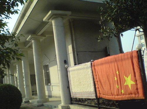 圖:國旗竟被做成被套曬在檢察院門口