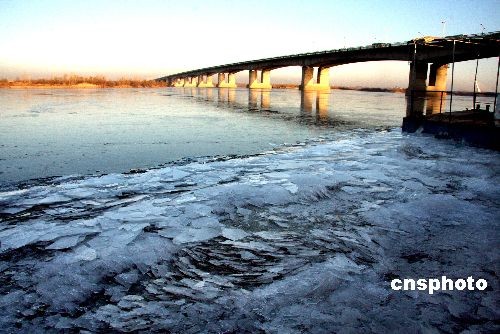 圖:松花江面開始漂浮大量薄冰排