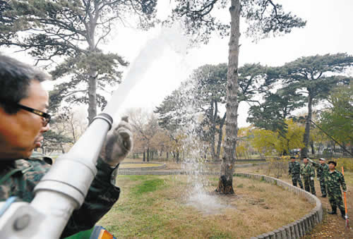 為確保今年綠化成果,保證樹木安全越冬,沈陽目前已全面加強今冬明春綠化養(yǎng)護管理工作。除對樹木進行樹干刷白處理,還將在秋季樹木落葉后至土壤結凍前、或早春土壤解凍后至樹木萌芽前施肥;在11月中下旬,對樹木進行一次冬灌,明年4月中下旬或5月初,對樹木進行一次春灌;在今年12月至明年2月進行樹木修剪;做好越冬防寒工作,對不同的樹木分別進行包裹、涂白、培土、設置風障等。(于海)