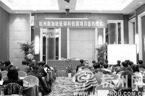 11月24日,杭州錢江經(jīng)濟(jì)開(kāi)發(fā)區(qū)與新加坡凈化科技企業(yè)集團(tuán)就杭州—新加坡低碳科技園項(xiàng)目正式簽署合作協(xié)議,新加坡工商聯(lián)合總會(huì)有關(guān)負(fù)責(zé)人及數(shù)十家新加坡企業(yè)代表出席簽約儀式。
