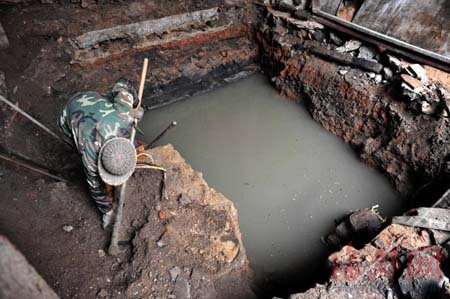 昨天(28日)上午,記者來(lái)到血池殿,已有十多位附近居民圍著重見(jiàn)天日的“血池”參觀。60歲的林長(zhǎng)欽依伯告訴我們,當(dāng)時(shí)工人剛剛挖開(kāi)地面,看到水面,以為只是地下水道,并沒(méi)有在意,等到整個(gè)池塘挖出時(shí),大伙兒才覺(jué)得可能有點(diǎn)兒名堂。