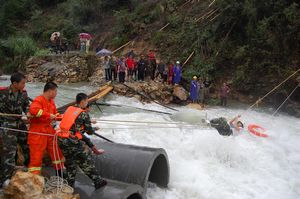 根據(jù)現(xiàn)場情況,救援人員迅速在被困男子上空架起一條空中繩索 一名熟悉水性的戰(zhàn)士攜帶安全繩,救生衣等救援裝備采用空中橫渡的方式到達(dá)被困人員上方。救援戰(zhàn)士首先嵌入水中將安全繩系在男子腰上,再將男子向上托起,使被困男子脫離石縫。最后在岸上救援人員一齊拉動安全繩。下午2時30分左右,最后一名落水男子被成功救援上岸,并迅速被送往醫(yī)院搶救。
