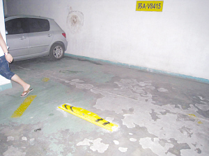 記者隨即來到大廈負(fù)二樓的停車場(chǎng),一睹機(jī)械車位的芳容!昂眉一铮淮蟮耐\噲(chǎng)里還真的停放了不少車輛!痹瓉,為了將停車位數(shù)量發(fā)揮到最大極限,這里的停車場(chǎng)充分利用了樓層的空間,借助機(jī)械設(shè)備將停車場(chǎng)分為上下兩層,使停車數(shù)量翻了一倍。那么市民爆料的人防工程停車位在那里呢?記者注意到,在機(jī)械車位的對(duì)面地面上還停著不少輛汽車,奇怪的是,每個(gè)停車位下面都安裝了地鎖,似乎是防止別的車輛亂停亂放。 就在記者感到納悶的時(shí)候,記者抬頭突然發(fā)現(xiàn),在機(jī)械車位對(duì)面的墻體上有些人防工程的標(biāo)識(shí)。