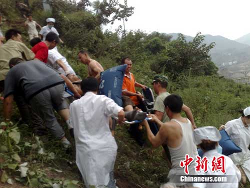 由于出事地點(diǎn)地形十分險(xiǎn)要,公路離崖底大約有30米的垂直距離,根本無路可下,情況十分危急,當(dāng)?shù)卮迕竦膮f(xié)助下找來鋤頭、鐵鍬迅速打開了一條臨時(shí)“生命通道”,趕到現(xiàn)場救援的消防官兵帶上破拆工具鉆進(jìn)車內(nèi)搜救幸存者,傷者被找到并用腰帶將傷者固定在擔(dān)架上,在當(dāng)?shù)卮迕窈偷膮f(xié)助下,用接力的方式抬著擔(dān)架,將傷者抬上路面,并立即送往縣內(nèi)各大醫(yī)院進(jìn)行急救。趕到現(xiàn)場的醫(yī)務(wù)人員判斷,車內(nèi)有一些已無生命跡象。