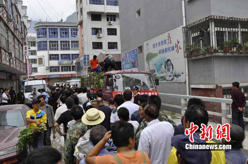 街道上的商店陸續(xù)開業(yè),居民開始在商店里選購自己的缺少的生活物資,物價較災(zāi)前沒有特別大的波動。受災(zāi)群眾有序的排隊領(lǐng)取著賑災(zāi)物資,可以領(lǐng)到蔬菜、方便面、礦泉水等。有的受災(zāi)群眾陸續(xù)從自家的危房中搬出還可以使用的家具,安置在更加安全的地方。